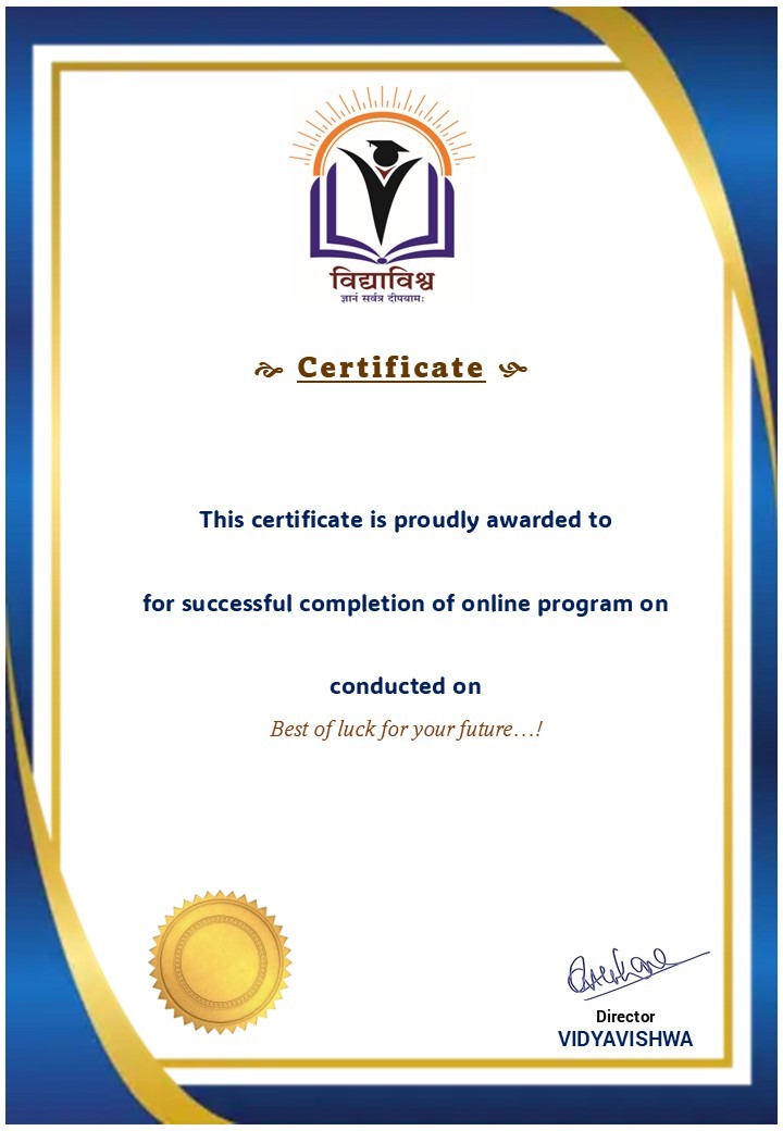Vidya Vishwa brings to you a world of knowledge and learning, inspired by the timeless standards of excellence in education and innovation. Vidya Vishwa strives to be a cornerstone in the realm of modern education and e-learning. Our platform is designed to transform ideas into impactful knowledge resources, much like how a simple galley of text once evolved into a specimen book that shaped an industry. Step into the Vidya Vishwa experience and be a part of the journey where tradition meets innovation." Get E Certificate after your learning to showcase your profile better.